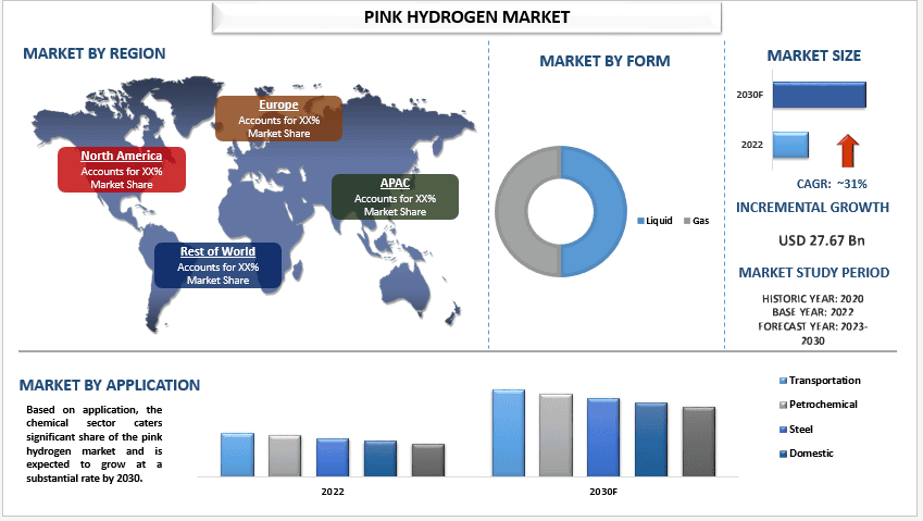 Global Pink Hydrogen Market was valued at USD 3.32 Billion in 2022 and is expected to grow a CAGR of 31% during the forecast period (2023-2030)