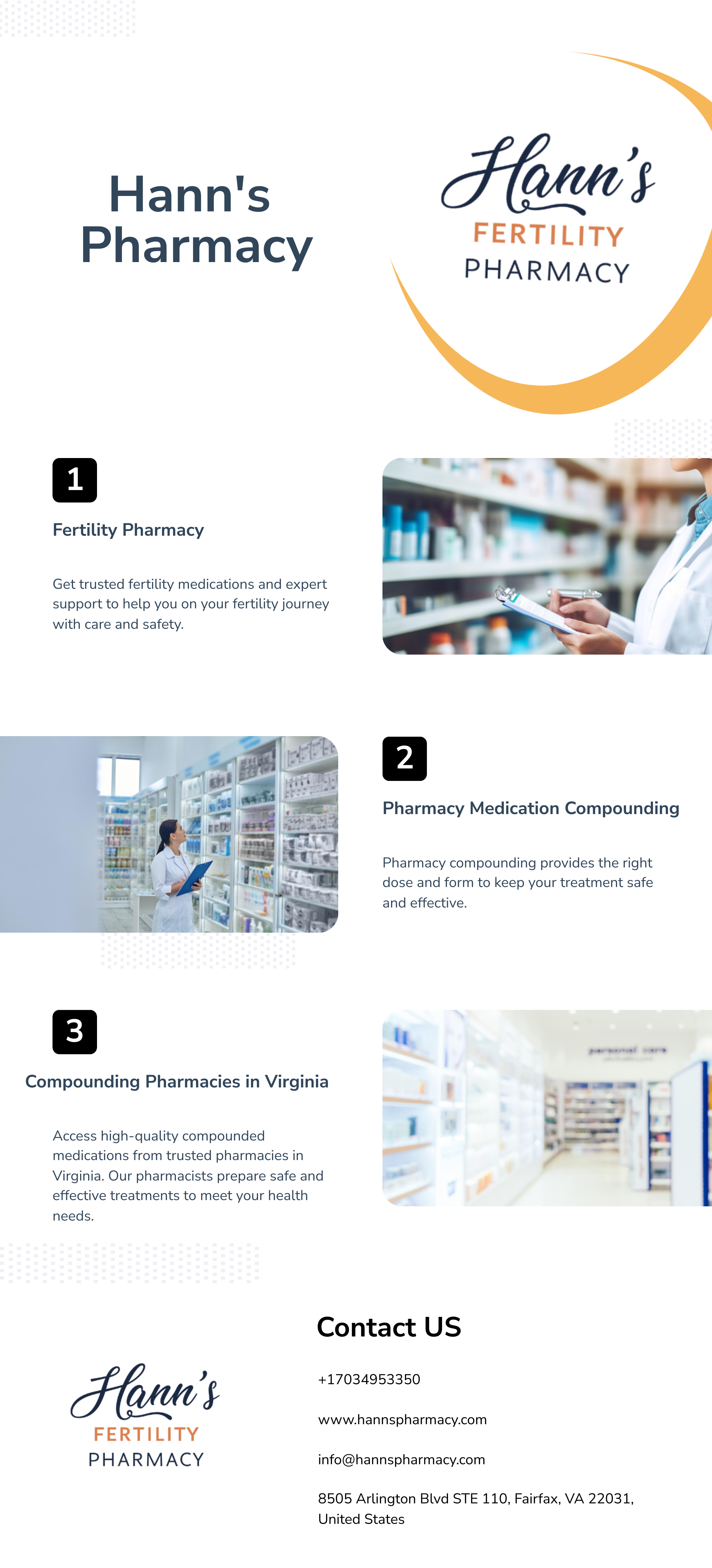• Hann's Pharmacy is the trusted Fertility Pharmacy in Virginia, dedicated to supporting health and wellness. As a leading Online Fertility Pharmacy, we provide personalised solutions, high-quality medications, and expert guidance to help you achieve your goals with care and convenience. Our specialised pharmacy medication compounding services ensure customised solutions tailored to your unique needs, offering precise dosages and formulations.