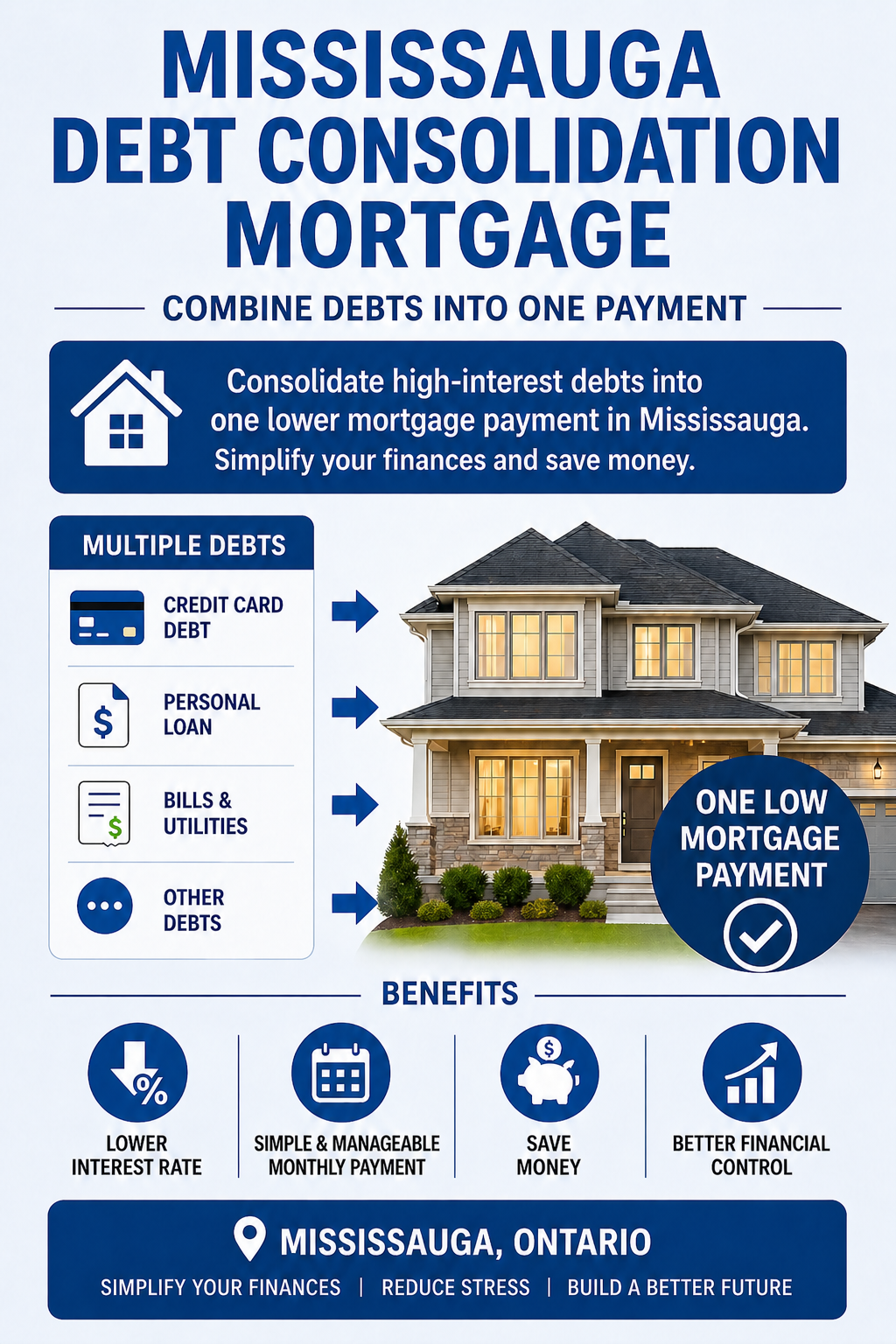 In Mississauga, where living expenses and credit usage are often high, many homeowners find this option beneficial for achieving financial stability. Instead of juggling multiple payments with varying due dates and interest rates, a debt consolidation mortgage combines everything into one predictable monthly payment.