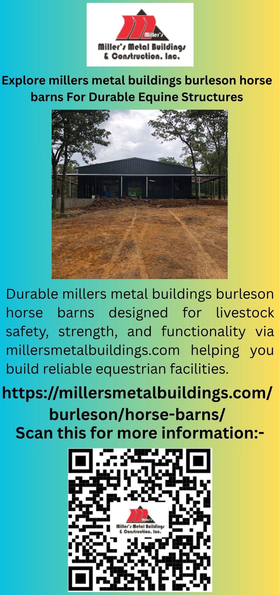 Durable millers metal buildings burleson horse barns designed for livestock safety, strength, and functionality via millersmetalbuildings.com helping you build reliable equestrian facilities.